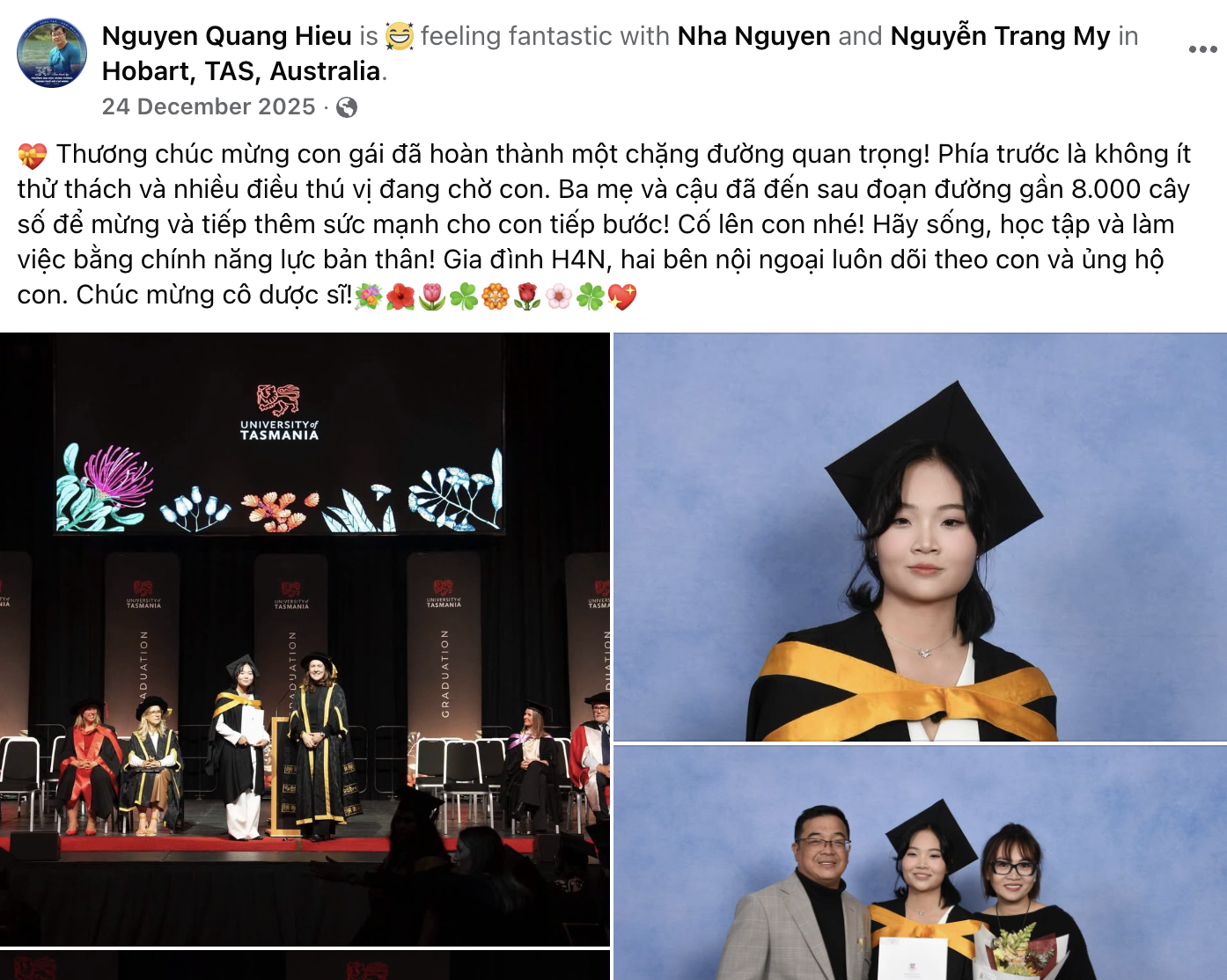 University of Tasmania là ngôi trường danh tiếng với tiêu chuẩn đào tạo khắt khe. Việc sở hữu tấm bằng Dược sĩ tại đây là minh chứng cho sự nỗ lực và bản lĩnh tuyệt vời của bạn. Chúc tân Dược sĩ một khởi đầu mới rực rỡ và nhiều cơ hội tại xứ sở chuột túi!